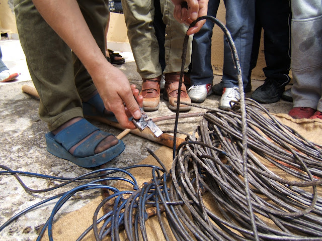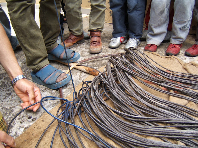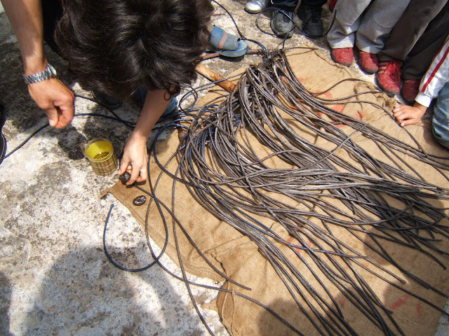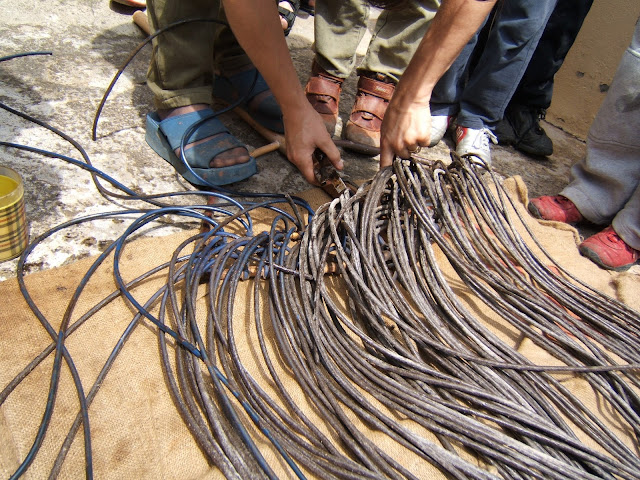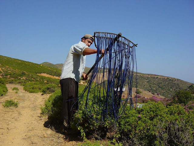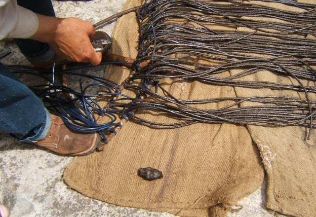 Το τελευταίο στάδιο της περισυλλογής του αλαδάνου είναι ο καθαρισμός των λουριών του αργαστηριού.