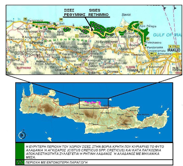 Η ευρύτερη περιοχή του χωριού Σίσες στην Βόρειο Κρήτη όπου κυριαρχεί το φυτό Λαδανιά ή Αγκίσαρος (Cistus Creticus spp Creticus) και κατά ΠΑΓΚΟΣΜΙΑ ΑΠΟΚΛΕΙΤΗΣΤΟΤΙΤΑ συλλέγεται η ρητίνη λαδανοΗ περιοχή του λαδάνου ή αλαδάνου ή λάβδανου είναι η περιοχή Βόρεια της Κρήτης ανάμεσα στους δυο πόταμους Αλμυρός προς τα ανατολικά και Γεροπόταμοςδυτικά.